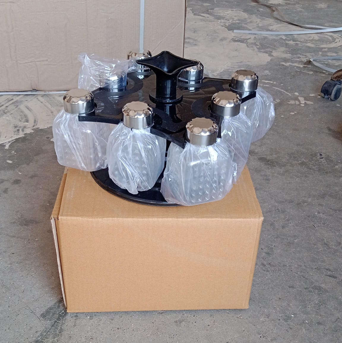 5502 All New Square 8 Bottle Design 360 Degree Revolving Spice Rack Container Condiment Pieces Set Square Small Container